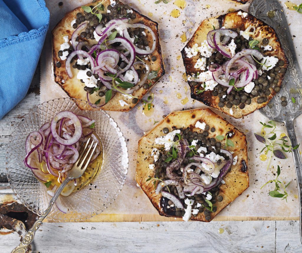 Bakad rotselleri med linser och feta