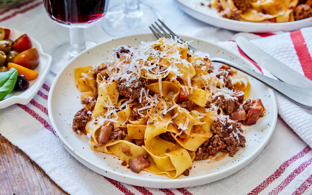 Vegetarisk bolognese på belugalinser med ajvar och mynta