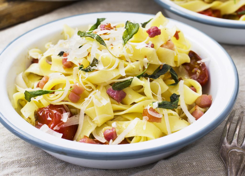 Tagliatelle med rimmat sidfläsk