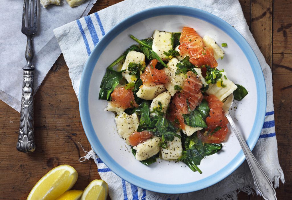 Ricottagnocchi med spenat och lax