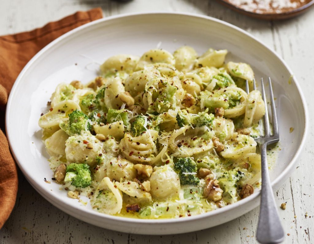 Pasta med broccoli och valnötter