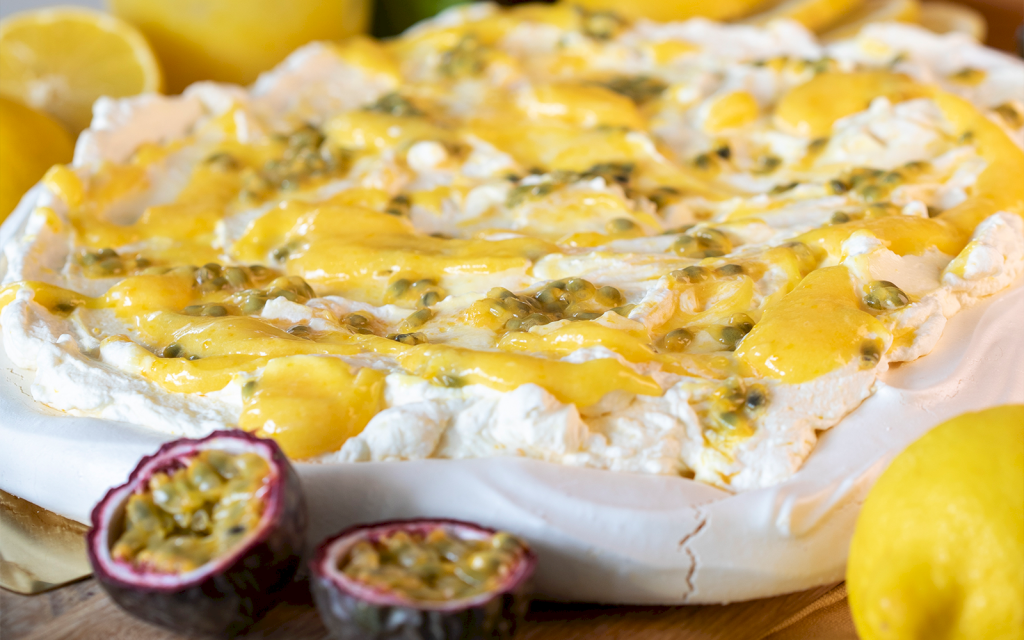 Citronpavlova med passionsfrukt