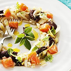 Endivsallad med oliver och lax