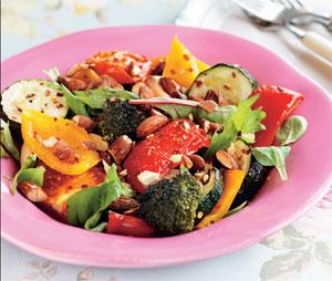 Färgglad sallad med rostade nötter