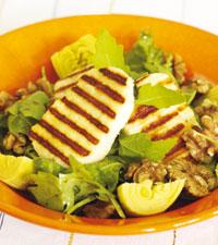 Grillad halloumisallad med kronärtskockshjärtan