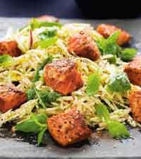 Äppelsallad med senap, mynta och kryddstekt lax