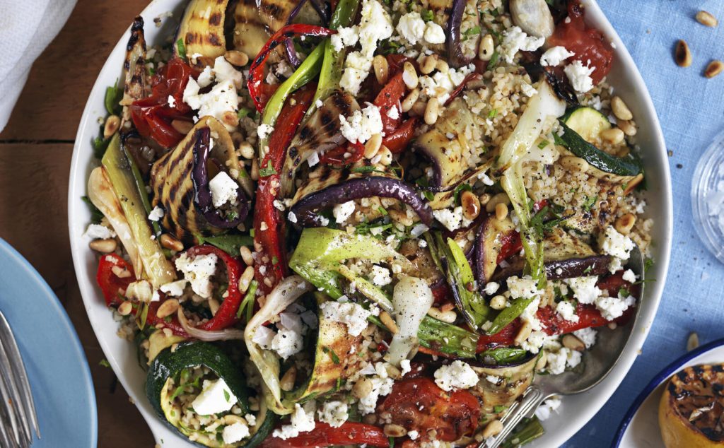 Bulgursallad med grillade grönsaker