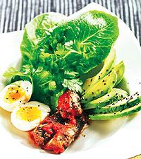 Sallad med sardin och ägg, avokado och ett gott bröd