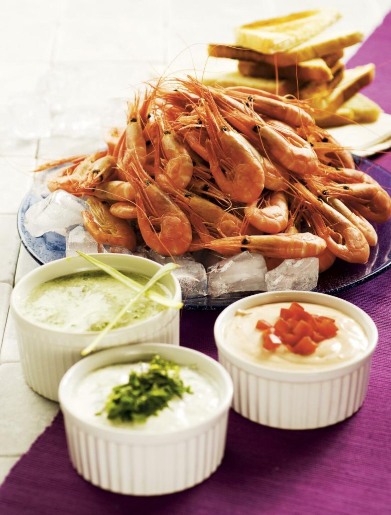 Räkor med tre såser