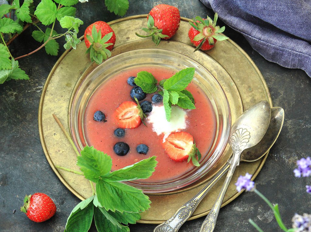 Söt gazpacho med melon och jordgubbar