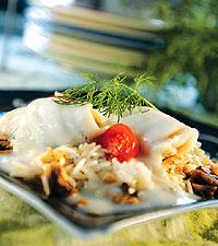 Fisk i mikron med champinjonris