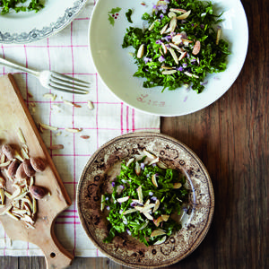 Grönkålssallad med saltrostade mandlar
