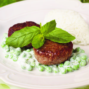 Lammfärsbiffar med mintärter och ris