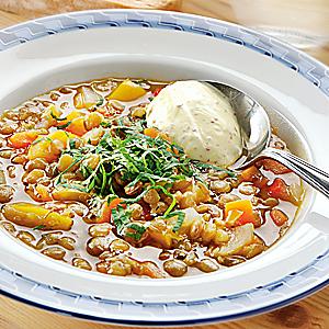 Linssoppa med senapsklick