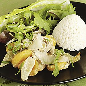 Wokat ingefärsfläsk med aprikoser