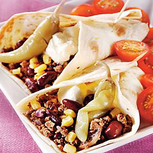 Quornburritos med bönor och sallad
