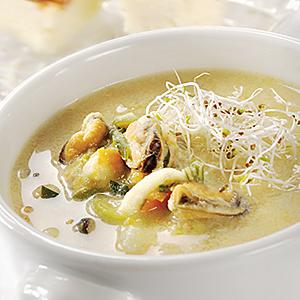 Musselsoppa med mustiga rötter