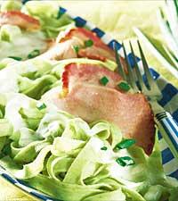 Kassler med löksåsoch grön fettuccine