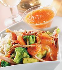 Kasslerwok med fruktig het sås