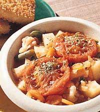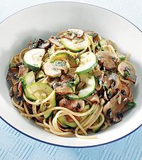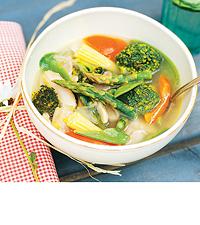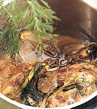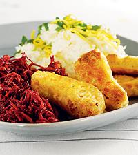 Kyckling i grön ärtsås med tomat- och mandelsallad