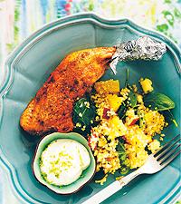 Fruktig quinoasallad med kycklingklubba