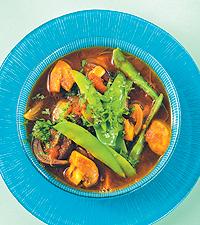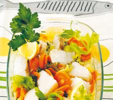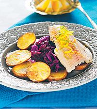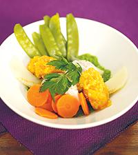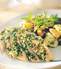 Buljongkokt kyckling serverad med rotsaksmos och persiljesky