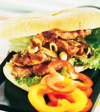 Strimlad karré med grönsallad och lökmarmelad