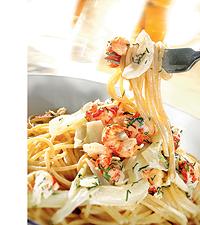 Spagetti med kräftor och fänkål