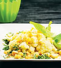 Blomkål med ägg, persilja och smulat, smörrostat bröd