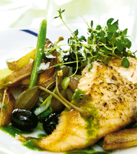 Rotsakspytt med pocherad fiskfilé