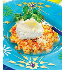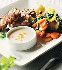 Kyckling med sommargrönsaker och kryddig yoghurt