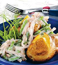 Bakad potatis med oststuvad kassler