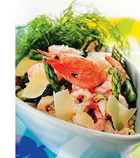 Sparrisrisotto med räkor och dill