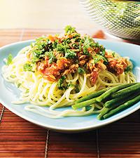 Spagetti med tonfisksås och haricots verts