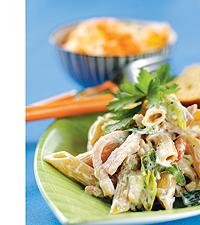 Fullkornspenne med färskostsås och kassler