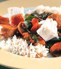Röd fisk- och korvgryta