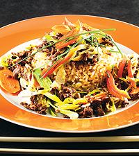 Renskavswok med enbär och fullkornsris