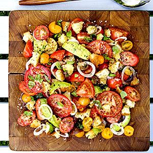 Tomatsallad med vitlökskrutonger