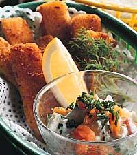 Fiskpinnar med syrlig sås