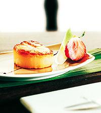 Seafood i guavajuice med halstrad pilgrimsmussla