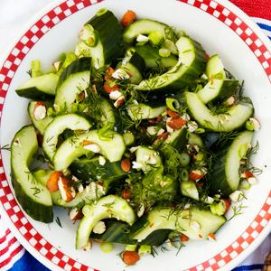 Het gurksallad med grillad citron och vårlök
