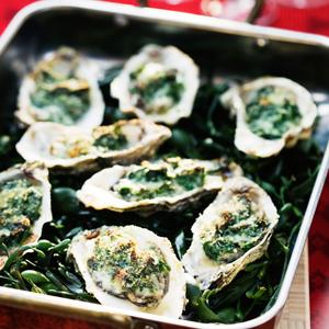 Gratinerade ostron med spenat