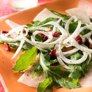 Fänkålscarpaccio med fårost och tranbär