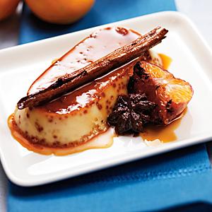 Creme caramel med glöggkryddor och stekta clementiner