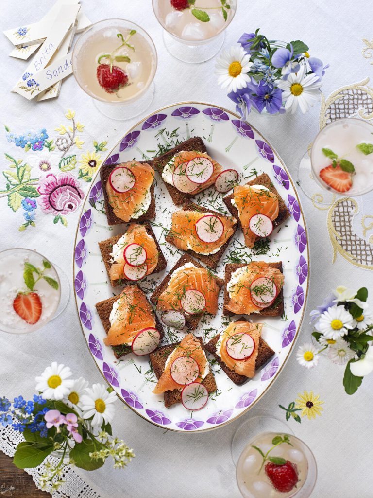 Gravlaxsnittar på kavring