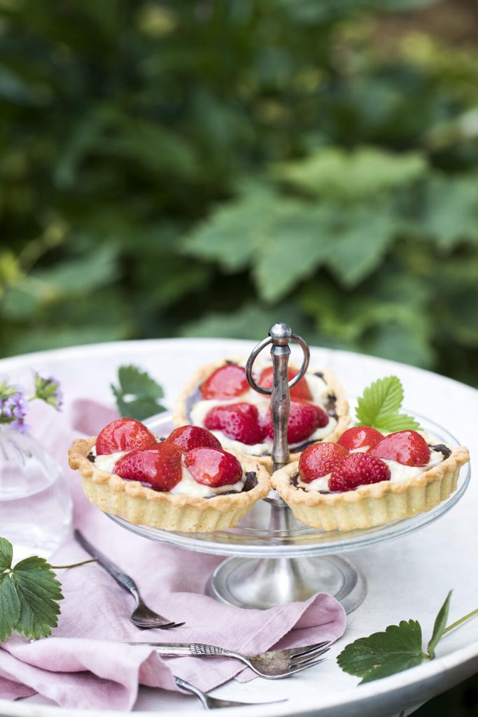 Jordgubbspajer med marsipankräm