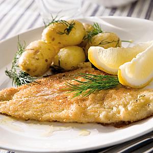 Panerad spätta med citronpotatis