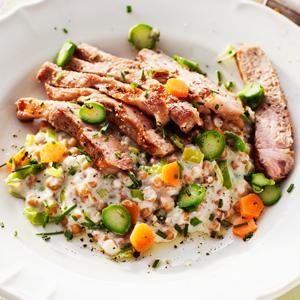 Krämigt örtvete med grillad karré