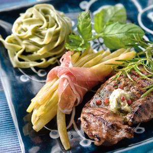 Portvinsmarinerad lammrostbiff med vitlöksrostad pumpa