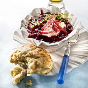 Enkel rödbetssoppa med chevrescones